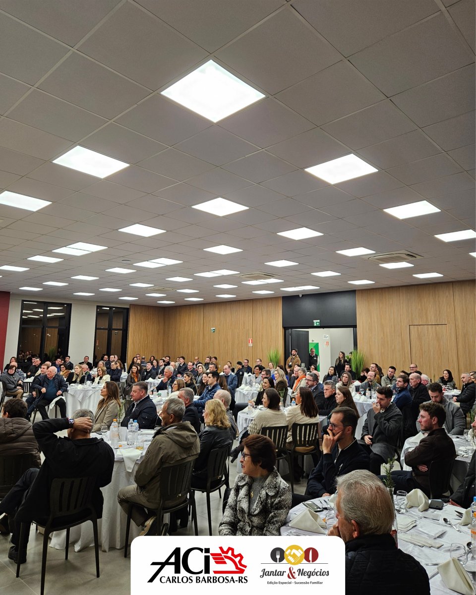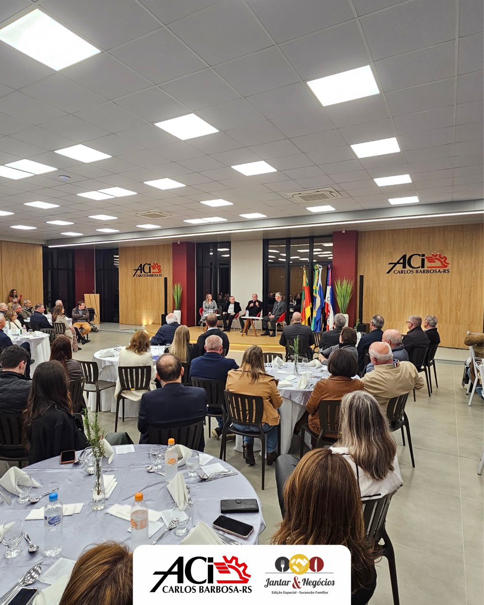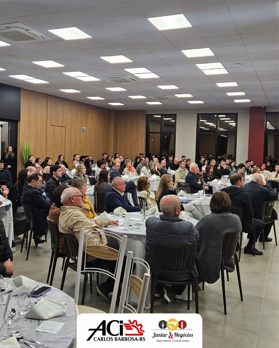 Na noite de terça-feira, 12 de agosto, a Associação do Comércio, Indústria e Serviços de Carlos Barbosa (ACI) promoveu, em sua nova sede, o Jantar & Negócios – Edição Especial Sucessão Familiar, reunindo mais de 150 participantes, entre empresários, autoridades e associados, em um encontro que destacou a importância da gestão estratégica para a continuidade das empresas.